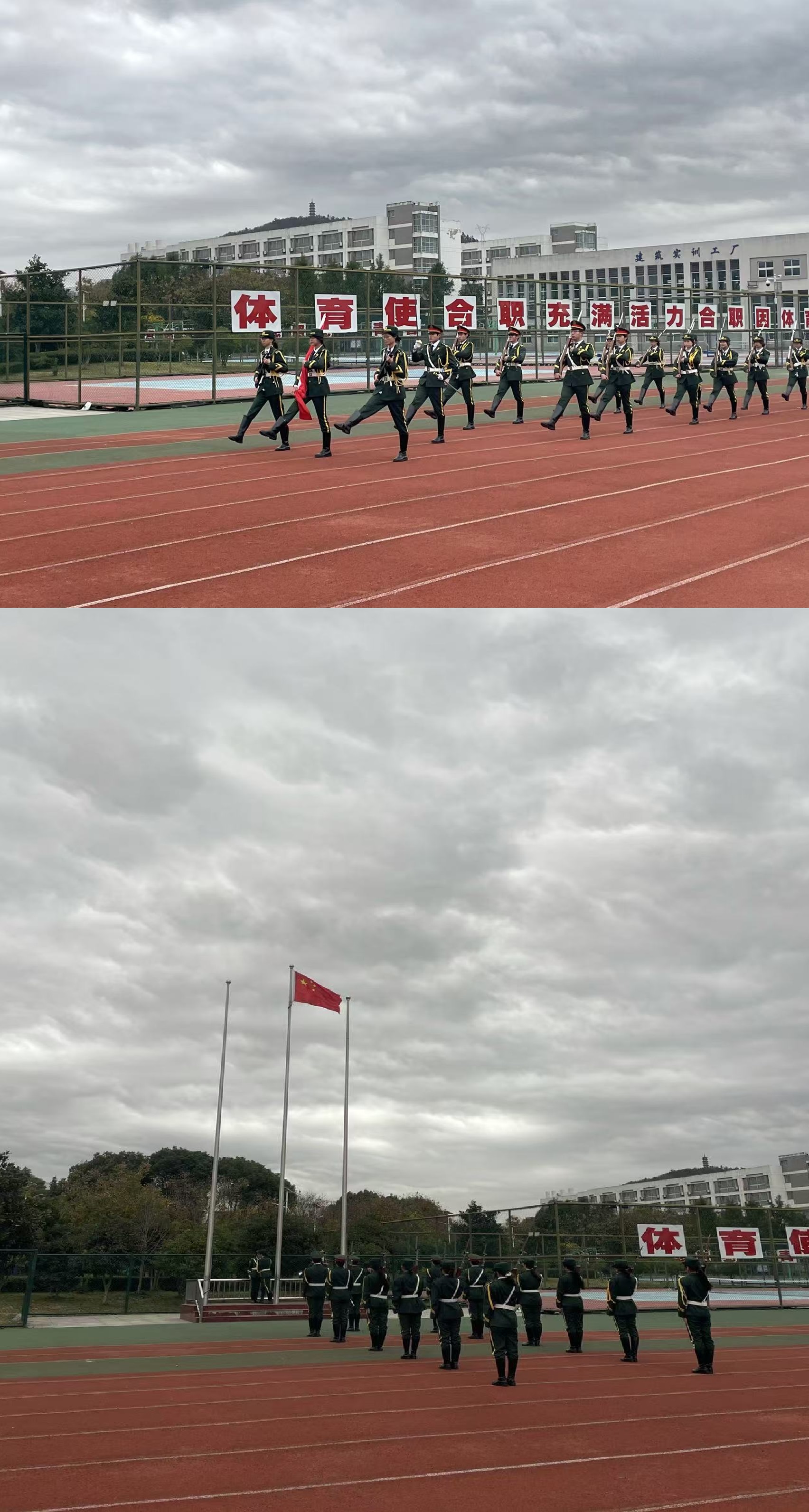 随着主持人宣布升旗仪式正式开始,国旗护卫队迈着整齐有力的步伐,护送五星红旗走向升旗台。在雄壮的国歌声中,全体师生肃立行注目礼,鲜艳的五星红旗冉冉升起,迎风飘扬。这一刻,国旗下的每一张面孔都写满了庄严与崇敬,爱国情怀在每个人心中激荡。