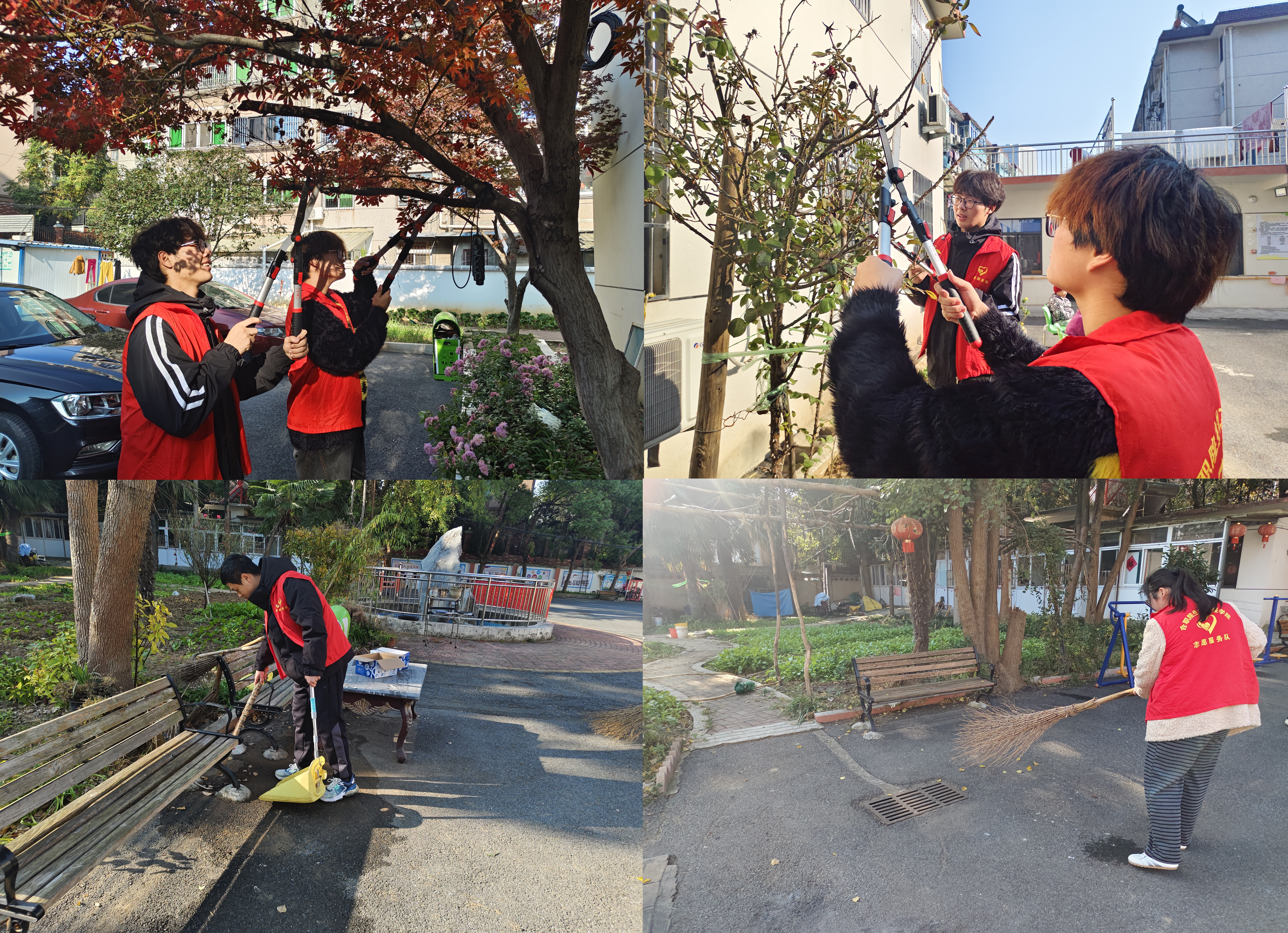 宣讲开展的同时,来自我院园林专业的学生志愿者,分工明确,迅速投入到工作中。他们拿着专业的修剪工具,对养老院中的树木进行精心修剪。他们认真地修剪着每一根树枝,不仅让树木更加美观,也为老人们的活动区域增添了更多的阳光。其他学生志愿者则拿起扫帚、抹布等清洁工具,对养老院的各个角落进行了彻底的打扫。经过几个小时的努力,养老院的环境焕然一新,整洁有序。
