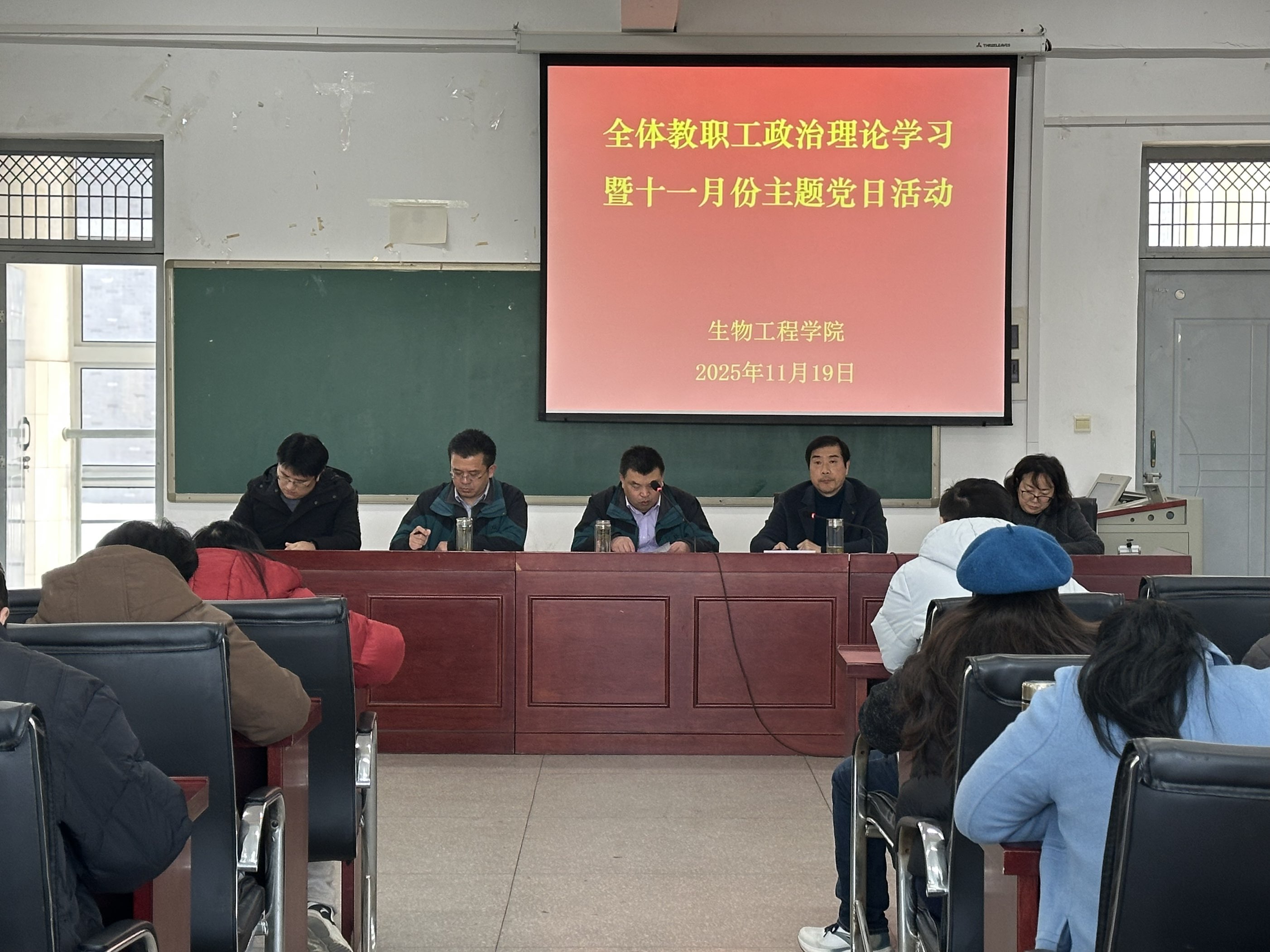 11月19日下午,生物工程学院在生化楼A305会议室开展全体教职工政治理论学习暨十一月份主题党日活动。该院党总支副书记(主持党总支工作)慈龙保主持会议,全体教职工参会。