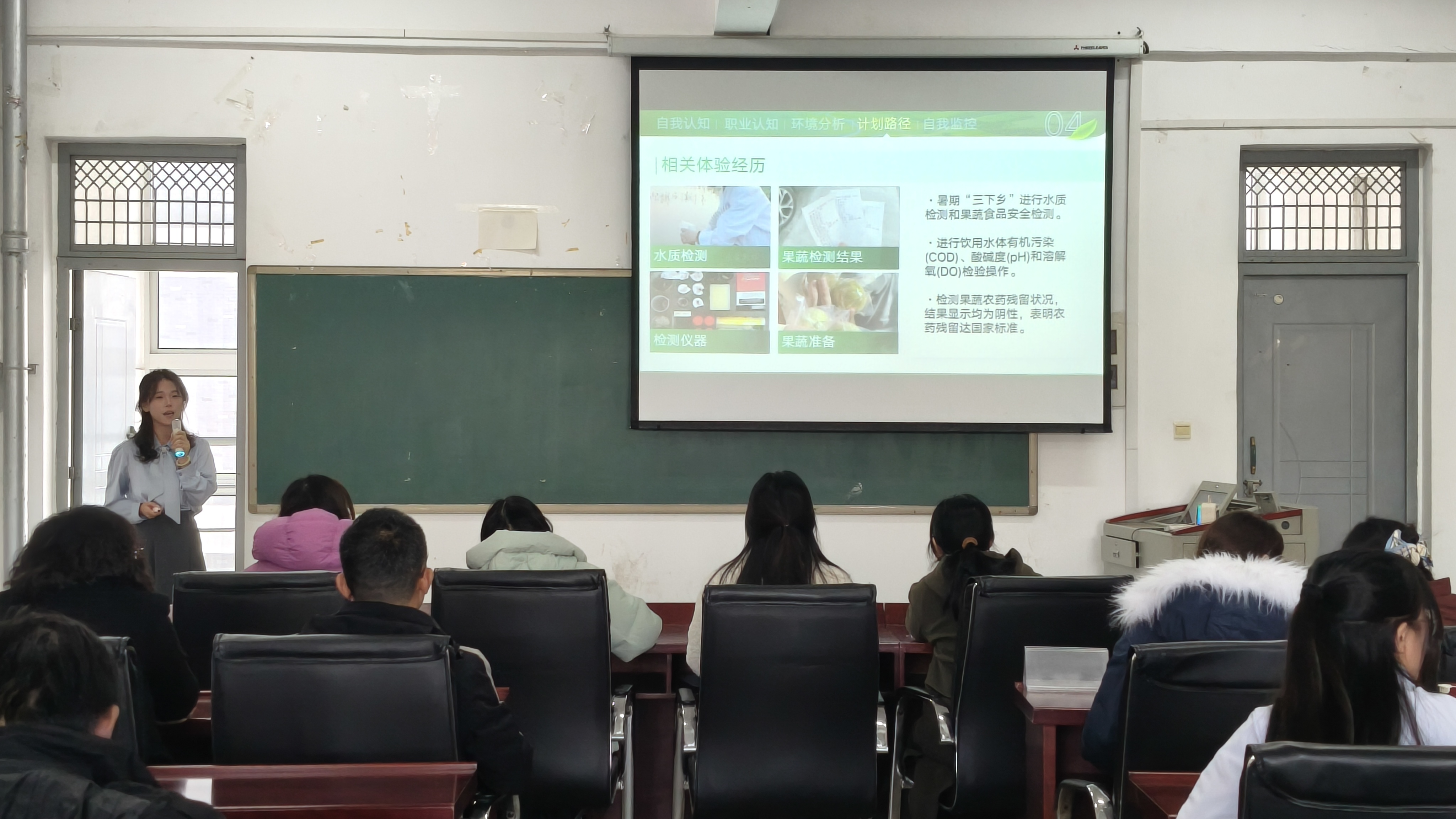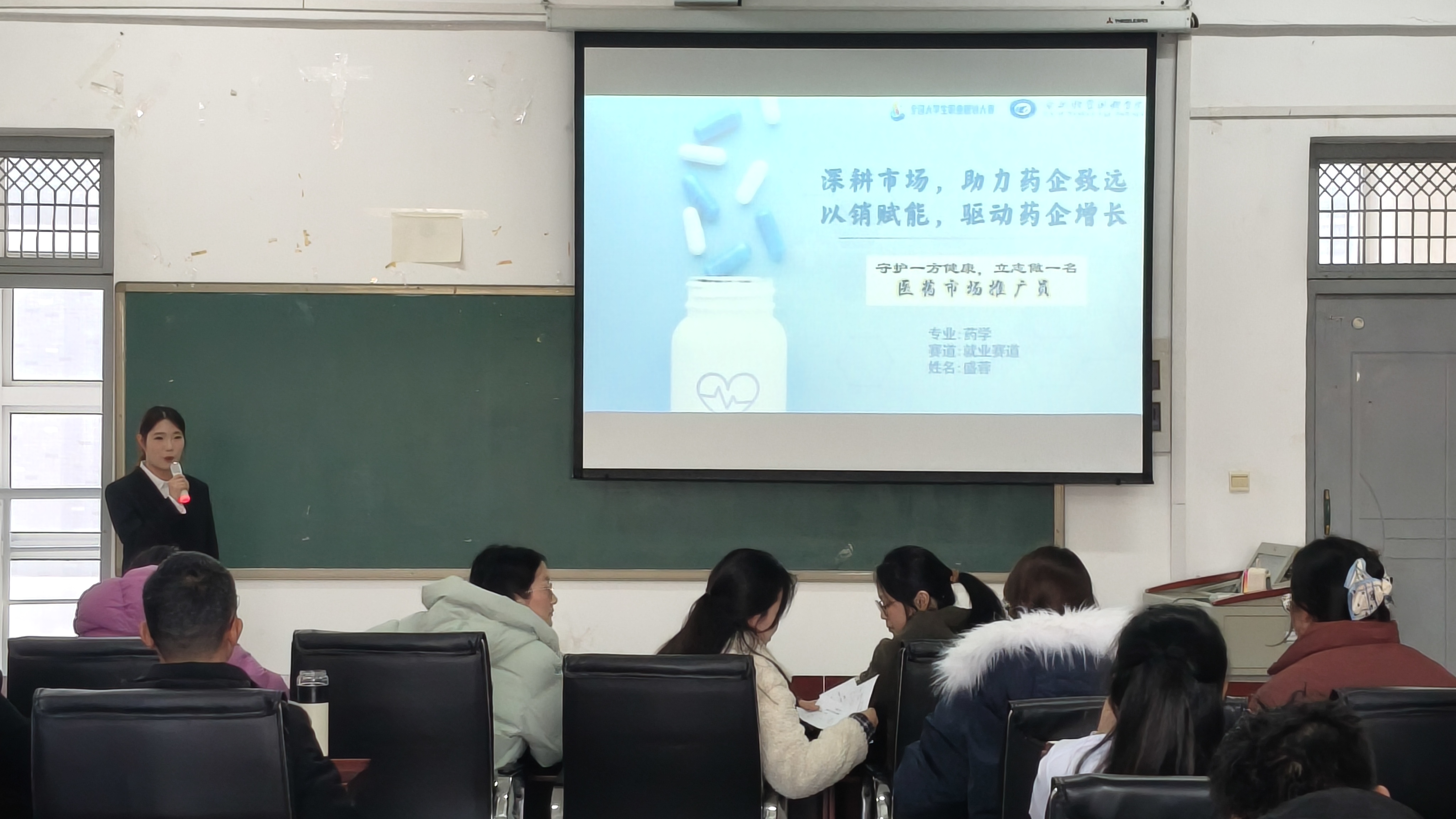 比赛现场气氛热烈,选手表现精彩纷呈。成长赛道选手结合详实的生涯报告,系统阐述职业认知与发展路径。“守望舌尖,筑梦未来”选手展现出对食品检测行业的深刻理解和守护食品安全的坚定信念;“根植乡土,播撒药香——做乡村健康的守望者”选手通过实地调研,提出切实可行的乡村用药服务方案,体现了扎根基层、服务乡亲的深厚情怀。就业赛道选手则聚焦岗位需求,展示专业素养与就业实力。“深耕市场,助力药企致远”选手以严密的逻辑和充实的准备,展现了出色的岗位胜任力,获得评委一致认可。整场比赛既是对职业规划的展示,更是专业知识与实践能力的综合体现。
