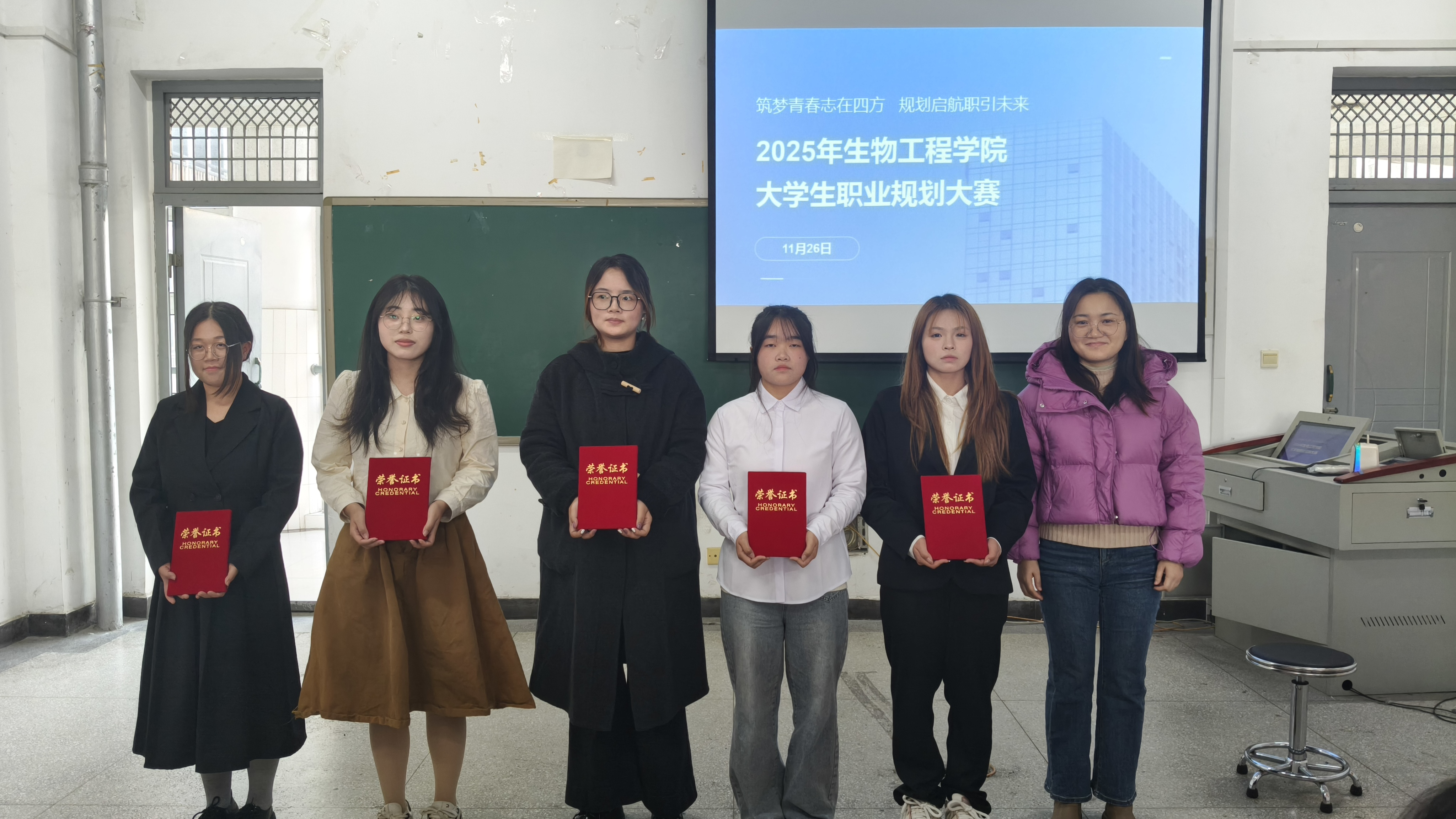 为强化生涯教育,提升就业竞争力,11月26日,生物工程学院2025年大学生职业规划大赛在生化楼A305圆满落幕。本次大赛由园林教研室张菲老师、食品教研室梅丽萍博士和药学教研室白露雨老师担任评委,该院党总支副书记邹坤、学生处就业创业中心主任李挺全程参与。