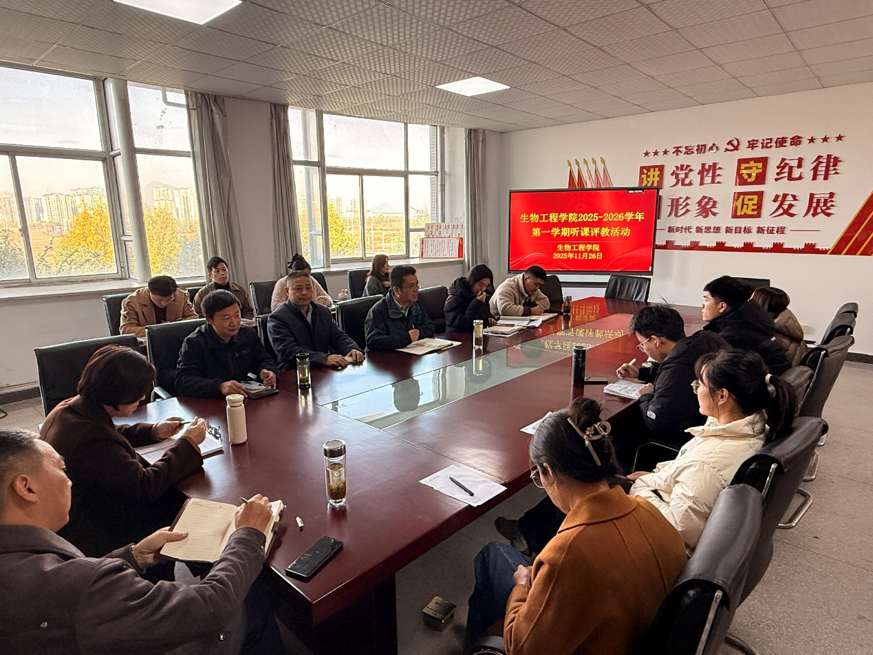 为全面掌握学院教师教学动态,提升课堂教学质量,加强教学过程管理,生物工程学院于近日圆满完成了2025~2026学年第一学期教师听课评课活动。此次活动以“以听促学、以评促教”为目标,深入课堂一线,客观评价教师教学水平,发现教学亮点与不足,为提高教师教学能力水平和顺利迎接办学能力评估工作提供支持。