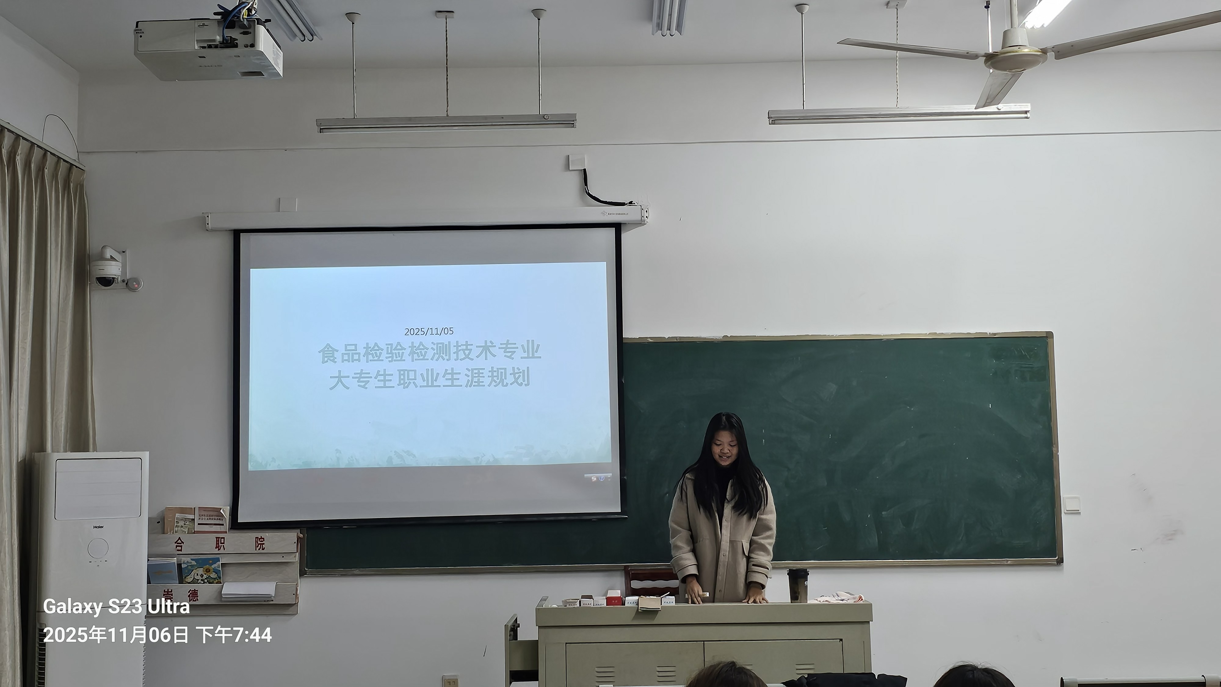 为助力班级同学明晰职业发展路径,提升个人核心能力与综合素养,25 级食品检验 3 班于11月上旬举办了大学生职业生涯规划比赛。初赛以宿舍为单位,经选拔后确定 8 名同学代表各宿舍参加班级决赛。