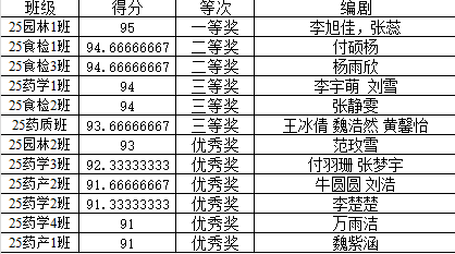 生物工程学院第二届心理情景剧剧本大赛于2025年12月1日-12月20日举办。根据剧本评审与现场展演评审,现将各班级参赛作品最终得分和获奖结果予以公示,如有异议,请于3个工作日内联系生物工程学院二级心理辅导站。
