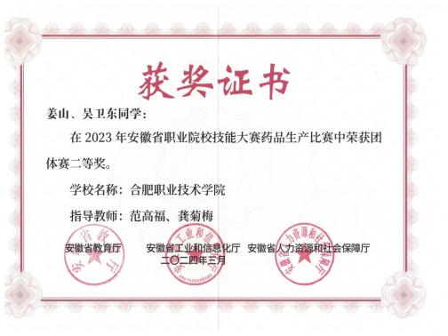 近年来,荣获省级教学成果特等奖1项、一等奖1项、三等奖多项;省级校企合作典型案例评比中荣获一等奖3项、二等奖1项;主持省级重点自然科学项目10余项、省级质量工程项目8项,与企业合作开展省级产学研项目课题3项。近五年公开发表论文20余篇,其中二类以上5篇,获得授权专利6项。在专业技能大赛中获国家级、省级等各类奖项14人次。专业发展紧密对接制药行业企业,学校每年邀请合作企业技术骨干参与“药物制剂压片技术”技能大赛活动,推动校企订单合作深度,为省会合肥地区及长三角提供高质量就业人才。