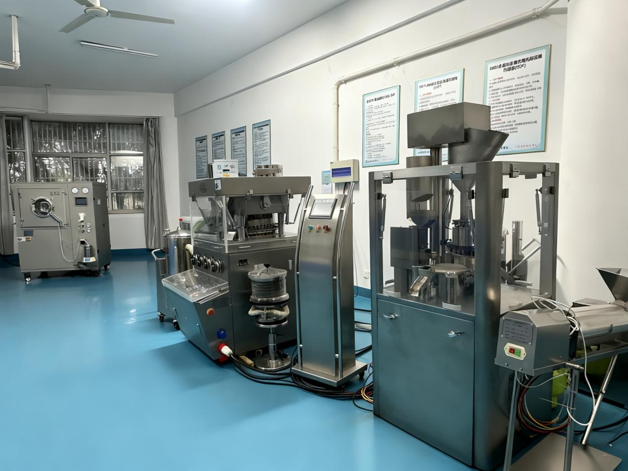 为了满足教学、科研需要,本专业在校内建成了药物制剂实训中心,拥有高效包衣机、全自动胶囊填充机、37冲高速旋转压片机、喷雾制粒机、高速湿法混合制粒机等固体制剂的主流生产性设备,水针剂洗、灌、封联动生产机组等无菌制剂设备;此外,建成生物制药实训中心、药品分析检测平台、药品安全检测实训室及药物制剂GMP仿真软件实训室,建筑面积达1000平方米。