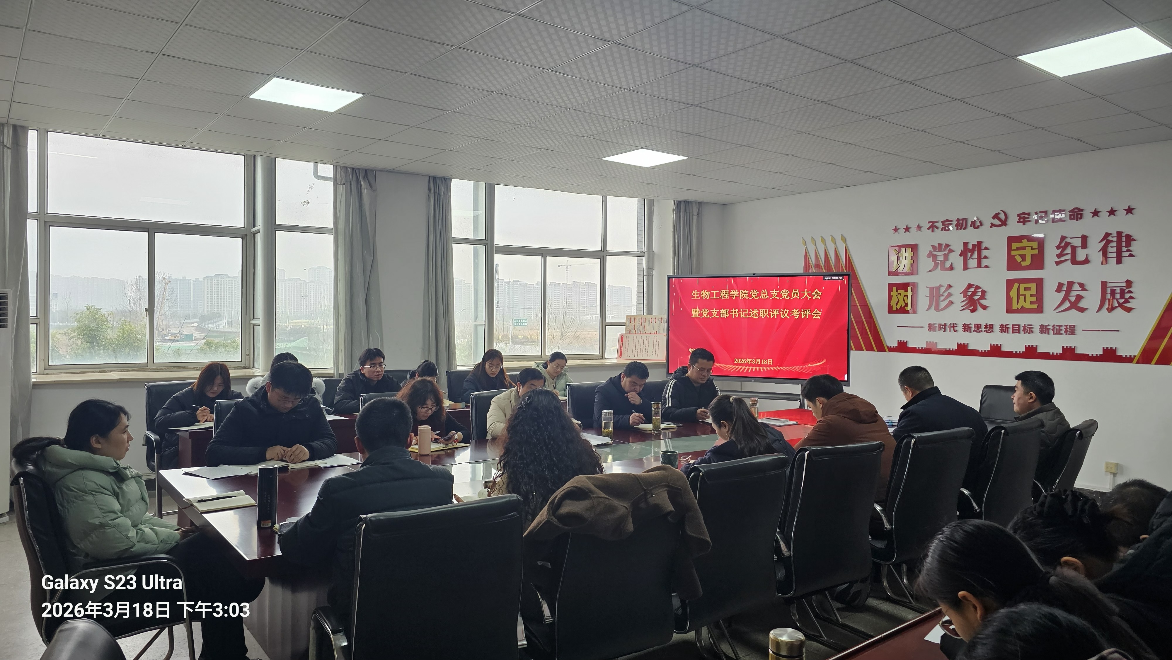 为深入贯彻树立和践行正确政绩观学习教育相关要求,压实基层党建工作责任,以高质量党建引领学院事业高质量发展,3月18日下午,我院党总支在生化楼A311党员活动室召开全体党员大会暨党支部书记述职评议考核会。学院全体党员参加,会议由党总支副书记(主持党总支工作)慈龙保主持。