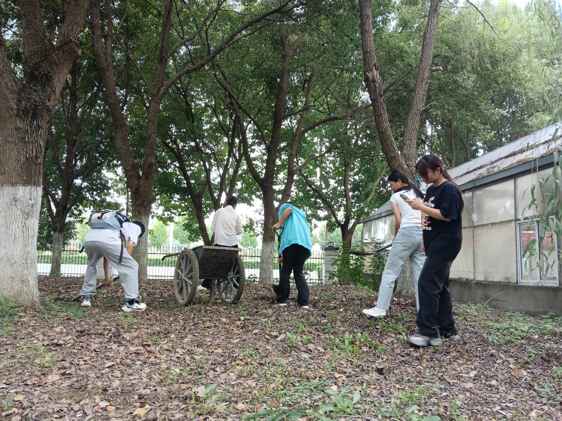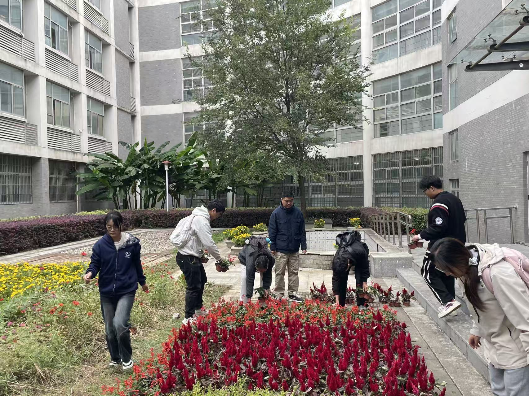 在生化楼清洁现场,一幅“全员参与、协同奋进”的劳动画卷徐徐展开。同学们以班级为单位,迅速明确分工:有的手持清洁工具,对路面落叶、碎石、纸屑等杂物进行“地毯式”清扫,确保每一处角落都整洁如新;有的专注擦拭公共设施,从宣传栏玻璃到楼梯把手,从指示牌边框到花坛边缘,细致的擦拭让校园设施重拾亮色;还有的主动承担垃圾分类工作,对照分类标准精准投放,将环保理念融入劳动细节。尽管秋日微风中夹杂着些许凉意,但同学们的热情丝毫不减,汗水浸透的衣衫、相互配合的默契,生动展现了生物工程学院学子“敢担当、能协作”的青春风采。