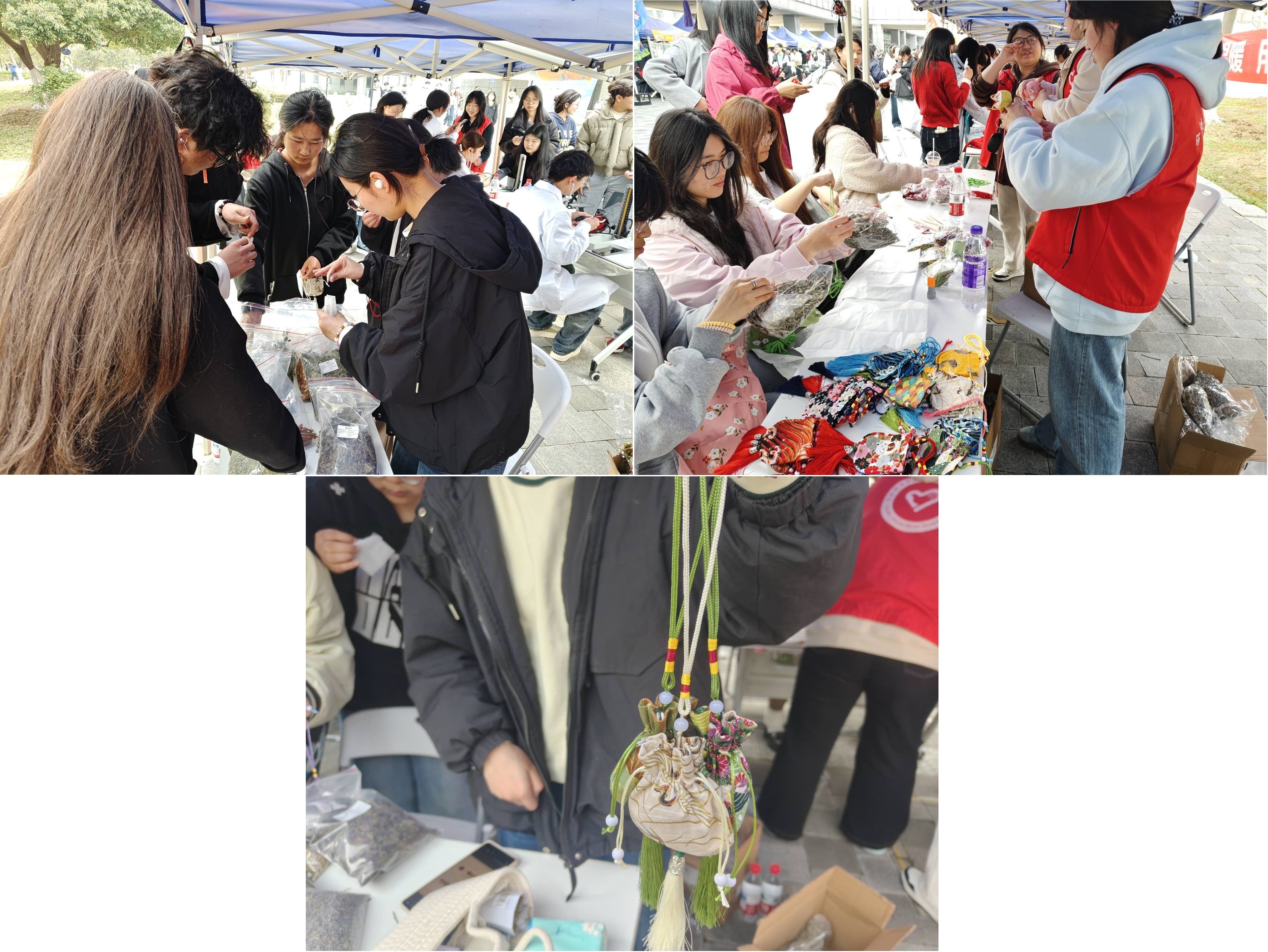 3月25日下午,生物工程学院“生辉暖阳”志愿服务队组织药海拾贝社团志愿者积极参加“志愿公益集市”展示交流活动,活动以“药香满校园,公益暖人心”为主题,精心设置中药香囊、艾草锤两大特色体验区,吸引全校师生踊跃参与,在趣味互动中感受中药魅力,传递校园温暖。
