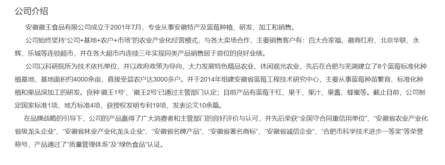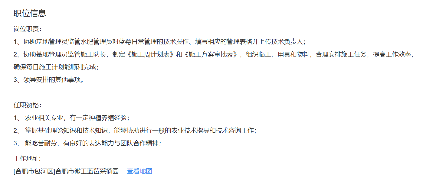 安徽徽王食品有限公司 蓝莓园实习主管【4k-4.5k/月】
